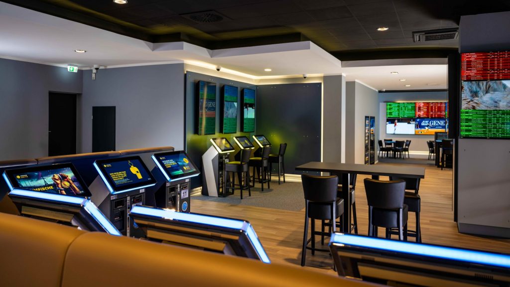 Mit dem exklusiven MERKUR BETS Shop-Konzept bieten Sie Ihren Kunden ein ultimatives Sportwettenerlebnis. Basierend auf einem flexiblen und modularen System, ermöglicht es unser Konzept jeden Raum individuell anzupassen. Egal, ob groß oder klein, unsere Module passen sich Ihren räumlichen Gegebenheiten perfekt an und bieten gleichzeitig maximale Funktionalität und Ästhetik. Durch die Folierung vorhandener Bauteile und eine einfache Boden- und Wandgestaltung minimieren wir die Bauzeit und -kosten, ohne dabei Kompromisse bei Qualität und Design einzugehen.